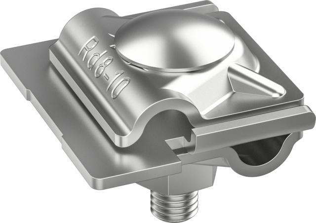 Zacisk krawędziowy z większą powierzchnią styku spełniający wymagania normy DIN EN 62561-1, do łączenia drutów okrągłych z rąbkami. Wykonanie proste, połączenie wzdłużne lub poprzeczne.