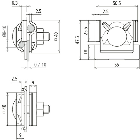 Zacisk krawędziowy do drutu o śr. 8-10 mm, o zakresie zacisku 0,7-10 mm, wykonanie proste, stal nierdzewna FK MV 8.10 KBF0.7 10 V2A