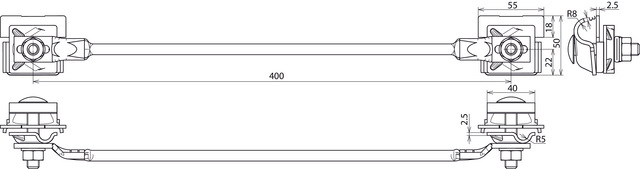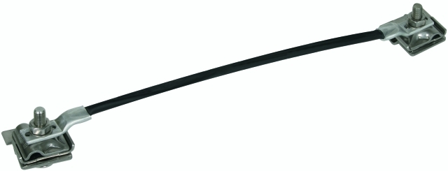 Linka łącząca z zaciskami krawędziowymi zgodna z normą DIN EN 62561-1, do łączenia lub mostkowania pokryć metalowych (np. segmentów attyki) bez konieczności wiercenia. Taka konstrukcja zapobiega zanieczyszczeniu wiórami wiertniczymi.