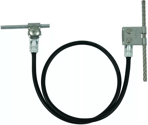 Linka łącząca do systemu lin asekuracyjnych, końcówka przyłączeniowa o śr. 8 mm, dł. 1000 mm, przekrój 16 mm², kolor czarny, Cu-guma, z 2 zaciskami do drutu o śr. 6-10 mm, stal nierdzewna ASSA D8 L1000 6.10 CU V2A