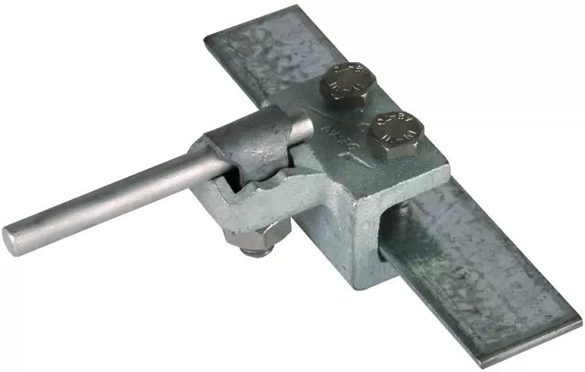 Zacisk spełniający wymagania normy DIN EN 62561-1, do przyłączania do konstrukcji stalowych i blach stalowych. Wykonanie ze śrubą KS do połączeń wzdłużnych lub poprzecznych.