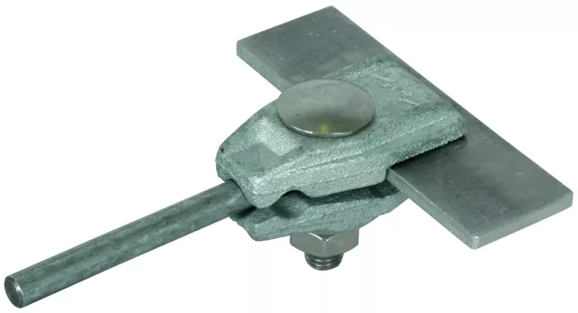 Zacisk spełniający wymagania normy DIN EN 62561-1, do przyłączania do konstrukcji stalowych i blach stalowych. Wykonanie do połączeń wzdłużnych lub poprzecznych.