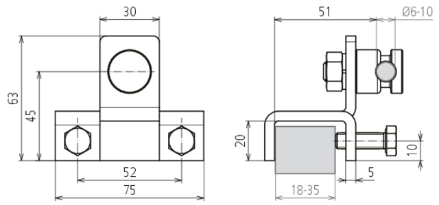 Zacisk przyłączeniowy do dźwigarów stalowych, do stref Ex 2/22, zakres zacisku 18-35 mm, do drutu o śr. 6-10 mm, wykonanie pionowe z zaciskiem KS, stal HDG AK 6.10 KSV FER S KBF18 35 V2A