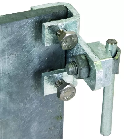 Zacisk przyłączeniowy do dźwigarów stalowych spełniający wymagania normy DIN EN 62561-1, do podłączania do konstrukcji stalowych. Wykonanie poziome z łącznikiem KS, połączenie wzdłużne lub poprzeczne.