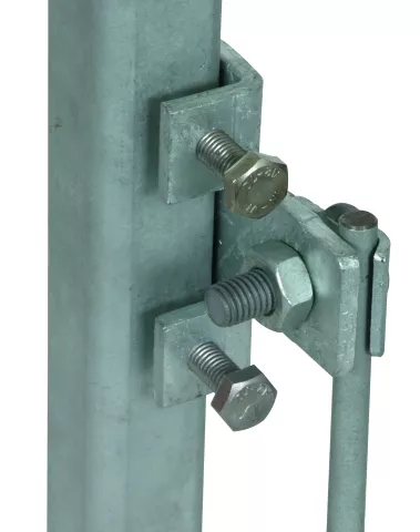 Zacisk przyłączeniowy do dźwigarów stalowych spełniający wymagania normy DIN EN 62561-1, do podłączania do konstrukcji stalowych. Wykonanie poziome z ramą zaciskową, połączenie wzdłużne lub poprzeczne.