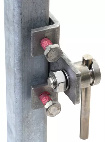 Zacisk przyłączeniowy do dźwigarów stalowych spełniający wymagania normy DIN EN 62561-1, do podłączania do konstrukcji stalowych. Wykonanie poziome z łącznikiem KS, połączenie wzdłużne lub poprzeczne. Śruby zabezpieczone przed samoczynnym luzowaniem podkładkami sprężystymi. Odpowiednie do stosowania w strefach zagrożonych wybuchem, strefa 2/22.