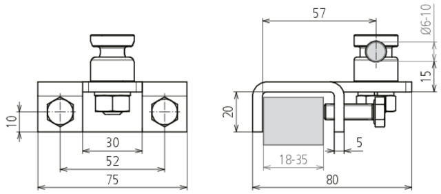 Zacisk przyłączeniowy do dźwigarów stalowych, do stref Ex 2/22, zakres zacisku 18-35 mm, do drutu o śr. 6-10 mm, wykonanie poziome z zaciskiem KS, stal HDG AK 6.10 KSV FER W KBF18 35 V2A