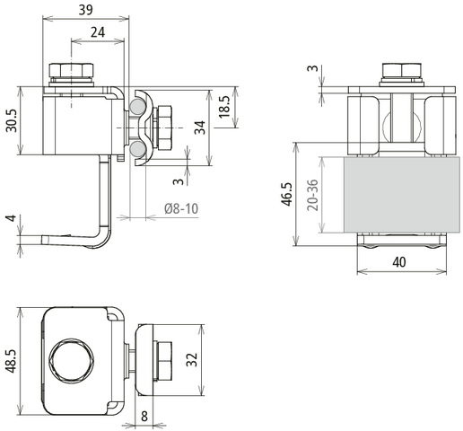 Zacisk przyłączeniowy do dźwigarów stalowych, zakres zacisku 20-36 mm, z podwójnym zaciskiem, stal nierdzewna AKK DUL 8.10 KBF 20 36 V2A