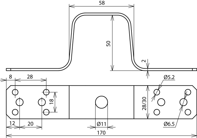 Profil łączący zgodny z normą DIN EN 62561-1, do podłączania i łączenia pokryć metalowych za pomocą nitów lub śrub. Wykonanie krótkie, z otworem środkowym.