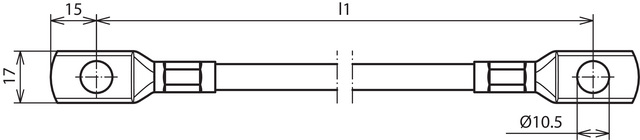 Linka łącząca, długość na życzenie (200-1500 mm), przekrój 25 mm², czarna, do stosowania na zewnątrz, Cu, z dwoma końcówkami kablowymi UEBS 25 L... B10.5 CU SW OD