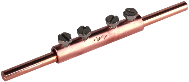 Mufy łączące zgodne z normą DIN EN 62561-1, do łączenia dwóch drutów okrągłych w układzie wzdłużnym za pomocą czterech śrub M6. Wykonanie z miedzi 8.