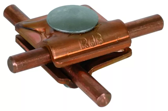 Zacisk połączeniowy spełniający wymagania normy DIN EN 62561-1, do uniwersalnego stosowania jako zacisk krzyżowy, T-kształtny i równoległy do drutów okrągłych. Wykonanie dwuczęściowe ze śrubą z łbem grzybkowym i z zabezpieczeniem przed obracaniem.