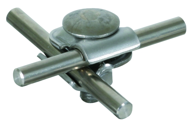 Zacisk połączeniowy MMV Mini spełniający wymagania normy DIN EN 62561-1, do uniwersalnego stosowania jako zacisk krzyżowy, T-kształtny i równoległy do drutów okrągłych. Wykonanie dwuczęściowe ze śrubą z łbem grzybkowym i z zabezpieczeniem przed obracaniem.