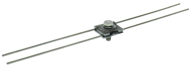 Zacisk połączeniowy MMV Mini spełniający wymagania normy DIN EN 62561-1, do uniwersalnego stosowania jako zacisk krzyżowy, T-kształtny i równoległy do mat siatkowych i drutów okrągłych. Wykonanie dwuczęściowe ze śrubą z łbem sześciokątnym i zabezpieczeniem przed obracaniem.