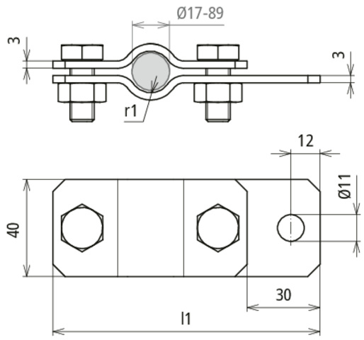Obejma uziemiająca do rur o śr. 54,5 mm (1 3/4"), z otworem o śr. 11 mm, stal HDG ERS 55 AB11 STTZN