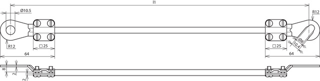 Przewód uziemiający z bardzo elastycznego przewodu miedzianego, odpornego na mróz, odpornego na promieniowanie UV, konfekcjonowanie zgodnie z VG 96927-11. Wykonanie z końcówką kablową, 1x otwarta M8 / M10 i 1x zamknięta M10.