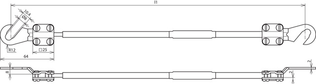 Przewód uziemiający z bardzo elastycznego przewodu miedzianego, odpornego na mróz, odpornego na promieniowanie UV, konfekcjonowanie zgodnie z VG 96927-11. Wykonanie z końcówką kablową, 2x otwarta, 2x M8 / M10.