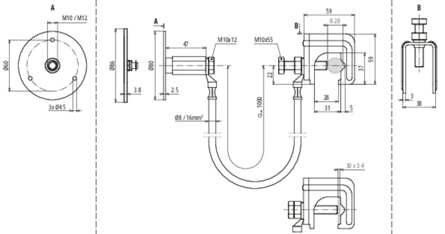 Zestaw przyłączeniowy zgodny z normą DIN EN 62561-1 do wykorzystania prętów zbrojeniowych (prętów podłużnych) słupów żelbetowych lub ścian jako przewodu odprowadzającego. Wykorzystanie już istniejących prętów zbrojeniowych w słupach żelbetowych pozwala pominąć montaż dodatkowych drutów okrągłych (stal HDG) do ustanowienia ochrony odgromowej / uziemienia / połączeń wyrównawczych. Połączenie elektryczne tworzy pionowy pręt zbrojeniowy na całej długości słupa żelbetowego.