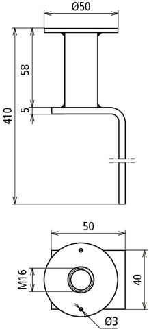 Mostek uziemiający z płaskownika, gwint M16, dł. 402 mm, z płytką przyłączeniową o śr. 50 mm i wys. 58 mm, wykonanie kątowe D BEB 1-L / EBS 15-03-19