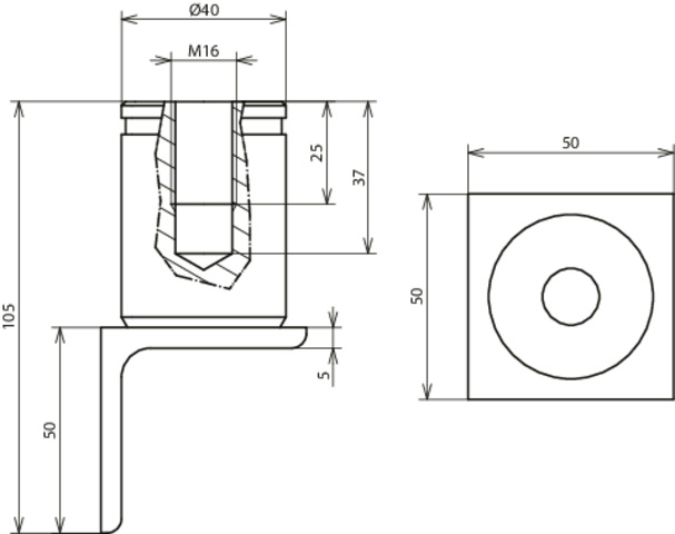 Mostek uziemiający, gwint M16, śr. 40 mm, wys. 105 mm, stal nierdzewna D BEB 16 - 105 / 3 EBS 15-03-19-38