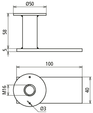 Mostek uziemiający z płaskownika, gwint M16, dł. 100 mm, z płytką przyłączeniową o śr. 50 mm i wys. 58 mm, wykonanie proste D BEB 1 - L100 / EBS 15-03-19