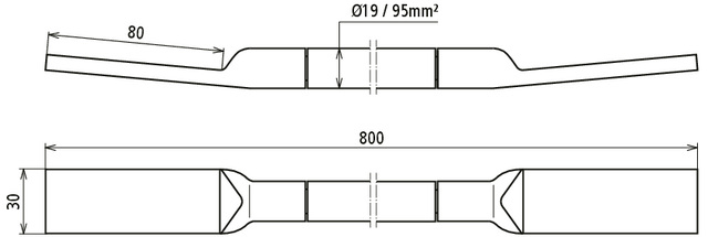 Mostek uziemiający z przewodu miedzianego NYY-O, z końcówką kablową na obu końcach 80x30 mm, dł. 800 mm, wykonanie sztywne D BEB 10 - L800 / EBS 15-03-19
