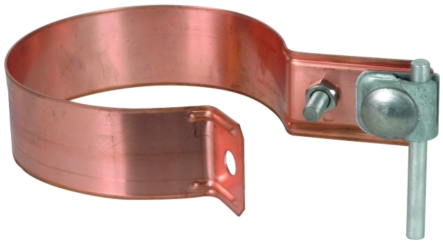 Obejma spełniająca wymagania normy DIN EN 62561-1, do przyłączenia rur spustowych do połączenia wyrównawczego piorunochronnego spełniająca wymagania normy DIN EN 62305-3 (VDE 0185-305-3). Możliwość przyłączenia drutów okrągłych Ø11 mm np. do łącznika KS lub do ramy zaciskowej. Wykonanie bimetaliczne do łączenia przewodów ze stali z rurami spustowymi z miedzi, z ramą zaciskową ze stali ocynkowanej ogniowo i kupalową płytką pośrednią, do rur o stałej średnicy ze śrubą M8.