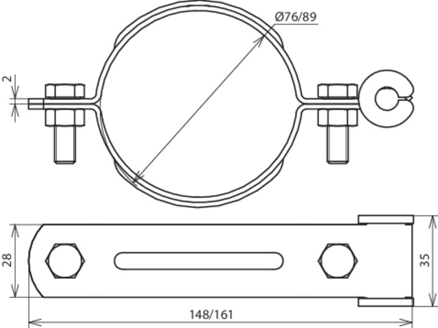 Wspornik masztowy z obejmą o śr. 89 mm, do drutu o śr. 8-10 mm, z tuleją PVC, stal HDG LH KD 8.10 D89 STTZN
