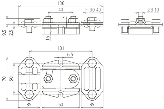 Złącze probiercze FIX z elementem izolacyjnym, do drutu o śr. 8-10 mm / płaskownika o szer. 30-40 mm, stal HDG FTS 8.10 FL30.40 IS STTZN