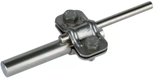 Zacisk rozłączny UNI spełniający wymagania normy DIN EN 62561-1, do łączenia przewodów odprowadzających z prętem uziemiającym. Wykonanie bez płytki pośredniej do prętów uziemiających, drut okrągły 16 mm.