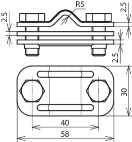 Zacisk probierczy UNI do drutu o śr. 8-10 mm / płaskownika o szer. 30 mm, z przekładką, stal nierdzewna UTK 8.10 FL30 ZP V2A