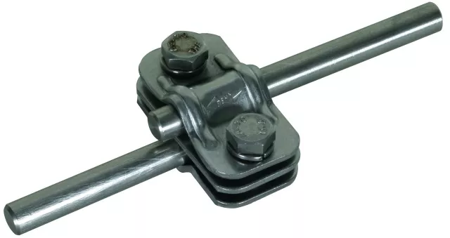 Zacisk rozłączny do łączenia iglicy odgromowej lub uziemienia z przewodem okrągłym. Obciążalność prądem piorunowym przetestowana do 200 kA (10/350 μs) zgodnie z normą DIN EN 62561-1. Wykonanie z podkładką sprężystą oraz płytką pośrednią do drutów okrągłych i płaskowników.
