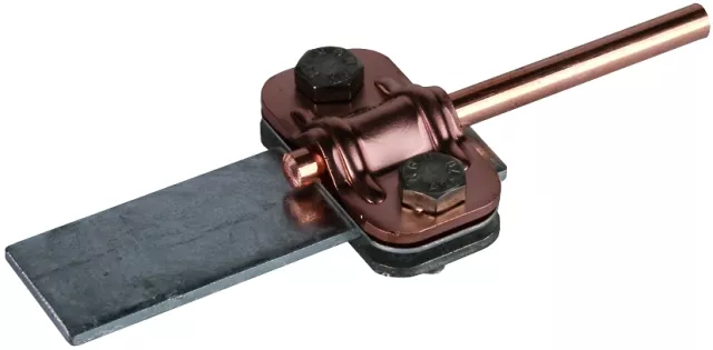 Zacisk rozłączny UNI spełniający wymagania normy DIN EN 62561-1, do łączenia przewodów odprowadzających z prętem uziemiającym. Wykonanie bimetaliczne, do drutu miedzianego i płaskownika ze stali ocynkowanej ogniowo lub ze stali nierdzewnej (V4A)