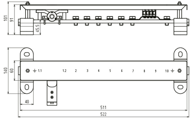 Nieiskrząca szyna wyrównawcza do stref zagrożonych wybuchem Ex do integracji drutów metalowych i przewodów z połączeniami wyrównawczymi piorunochronnymi zgodnie z VDE 0185-305-3 (IEC 62305-3) oraz z ochronnymi i funkcjonalnymi połączeniami wyrównawczymi zgodnie z DIN VDE 0100 część 410/540. Do stosowania w strefach Ex 1 i 2 (gazy, opary, mgły) oraz w strefach Ex 21 i 22 (pyły), grupa wybuchowości IIC (współczynnik bezpieczeństwa 1) zgodnie z CLC 50703-2. Zgodnie z klasą temperaturową T4 oraz DIN EN 62561-1 (VDE 0185-561-1) klasa obciążalności prądowej H (100 kA). Zabezpieczenie śruby przed samoczynnym luzowaniem zgodnie z VDE 0185-305-3 uzupełnienie 2. Dozwolone stosowanie zarówno wewnątrz, jak i na zewnątrz. Aby uniknąć rozszczepień w strefie zagrożenia wybuchem, zaleca się zastosowanie ocynowanych zaciskanych końcówek kablowych z niklową warstwą blokującą. Produkt wyposażony jest w następujące przyłącza: 1x płaskie (M10 x 40 mm z podkładką sprężystą), 5x końcówka kablowa (M10 x 20 mm z podkładką sprężystą) i 1x adapter w technice wtykowej („push-in”) 4x 4-16 mm².