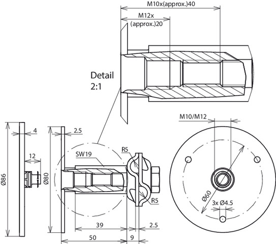 Wypust uziemiający typu M, gwint M10/M12, stal nierdzewna, z zaciskiem MV do drutu o śr. 8-10 mm, stal HDG EFPM M10 12 V4A MVK8.10 STTZN