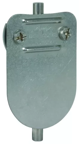 Tabliczka do mocowania znacznika testowego do przewodu odprowadzającego lub pręta uziemiającego. Wykonanie do drutu okrągłego / płaskownika.