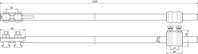 Pręt uziemiający, śr. 16, dł 1500 mm, stal HDG, z mufą rozłączną i 2 zaciskami KS EESS 16 1500 TM 2KS7.10 STTZN