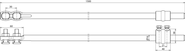 Pręt uziemiający, śr. 16, dł 1500 mm, Cu, z mufą rozłączną i 2 zaciskami KS EESS 16 1500 TM 2KS7.10 CU