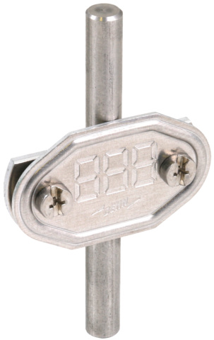 Tabliczka numeracyjna do znakowania złączy pobierczych. Wykonanie z tłoczeniem składającym się z 7 segmentów do drutów / płaskowników.