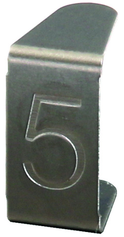 Wkładka z wytłoczonym numerem (5) do montażu bez narzędzi w tabliczce numeracyjnej ze szczelinami (art. nr 490 100, 490 110, 490 116).