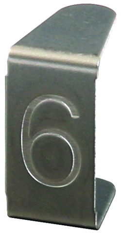 Wkładka z wytłoczonym numerem (6) do montażu bez narzędzi w tabliczce numeracyjnej ze szczelinami (art. nr 490 100, 490 110, 490 116).