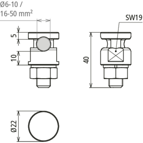 Łączniki KS zgodne z normą DIN EN 62561-1, do obciążalnego prądem piorunowym podłączania drutów okrągłych, np. do profili płaskich, obejm do rur spustowych lub innych elementów instalacji odgromowej. Wykonanie jednoczęściowe, stal nierdzewna (V4A), ze śrubą i nakrętką M10 i prowadnicą z powierzchnią na klucz płaski.