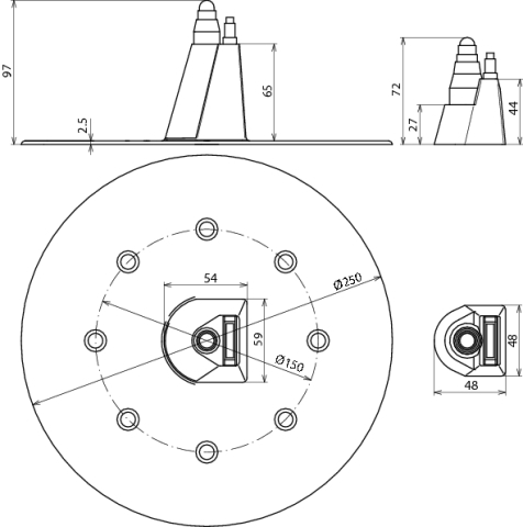 Przepust dachowy o śr. 250 mm, do drutu o śr 8-10-16 mm / płaskownika 20x2,5-30x3,5 mm, tworzywo sztuczne DDF 8 10 16 FL20.30 D250 K