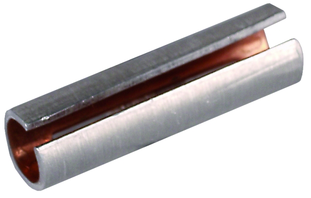 Tuleja bimetaliczna (kupalowa) do odpornych na korozję połączeń stali lub aluminium z miedzią. Wykonanie do wciskania na przecięte przewody.