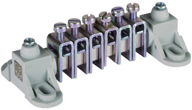 Szyna wyrównawcza MINI zgodna z normą DIN EN 62561-1, do ochronnego i funkcjonalnego wyrównywania potencjałów zgodnie z normą DIN VDE 0100-410/540 i piorunowego wyrównania potencjałów zgodnie z normą DIN EN 62305-3 (VDE 0185-305-3). Wykonanie MINI, przetestowane zgodnie z DIN VDE 0609, zaciski szeregowe St/gal Zn, ramki mocujące do szyny i pokrywa z tworzywa sztucznego, kolor szary (bezhalogenowe).