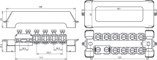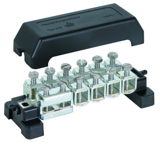 Szyna wyrównawcza zgodna z normą DIN EN 62561-1, do ochronnego i funkcjonalnego wyrównywania potencjałów zgodnie z normą DIN VDE 0100-410/540 (główna szyna uziemiająca (GSU)) i piorunowego wyrównania potencjałów zgodnie z normą DIN EN 62305-3 (VDE 0185-305-3). Wykonanie odporne na promieniowanie UV, przetestowana zgodnie z DIN VDE 0618-1, ze znakiem CE, St/gal Zn, ramki mocujące i pokrywa z tworzywa sztucznego (bezhalogenowego), pokrywa z możliwością plombowania i opisywania.