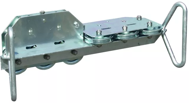 Prostowarka do drutu do prostowania drutów z różnych materiałów (stal ocynkowana ogniowo, miedź i aluminium). Wykonanie mit 10 krążkami linowymi i uchwytami.