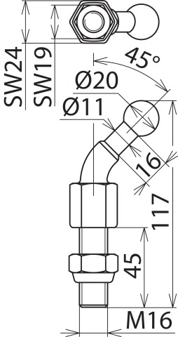 Kulowy punkt mocowania o śr. 20 mm, kątowy 45°, z gwintowanym kołkiem i nakrętką M16x45 KFP 20 W45 M16 45SSM