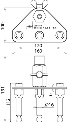 Płyta przyłączeniowa uziemienia z tuleją uziemiającą i 3 kulowymi punktami mocowania z rowkiem pierścieniowym, jako punkt przyłączeniowy zgodnie z DIN VDE 0683-100 (EN/IEC 61230). Proste przyłącze gałęzi fazy, jednobiegunowe. Wysoka obciążalność prądem zwarciowym.
