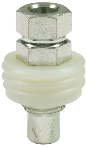 Wkładka uziemiająca wkręcana z przyłączem M10, izolowany gwint. Do wkręcania za pomocą uchwytu uziemiającego TI w gwintowane podstawy bezpiecznika E27.